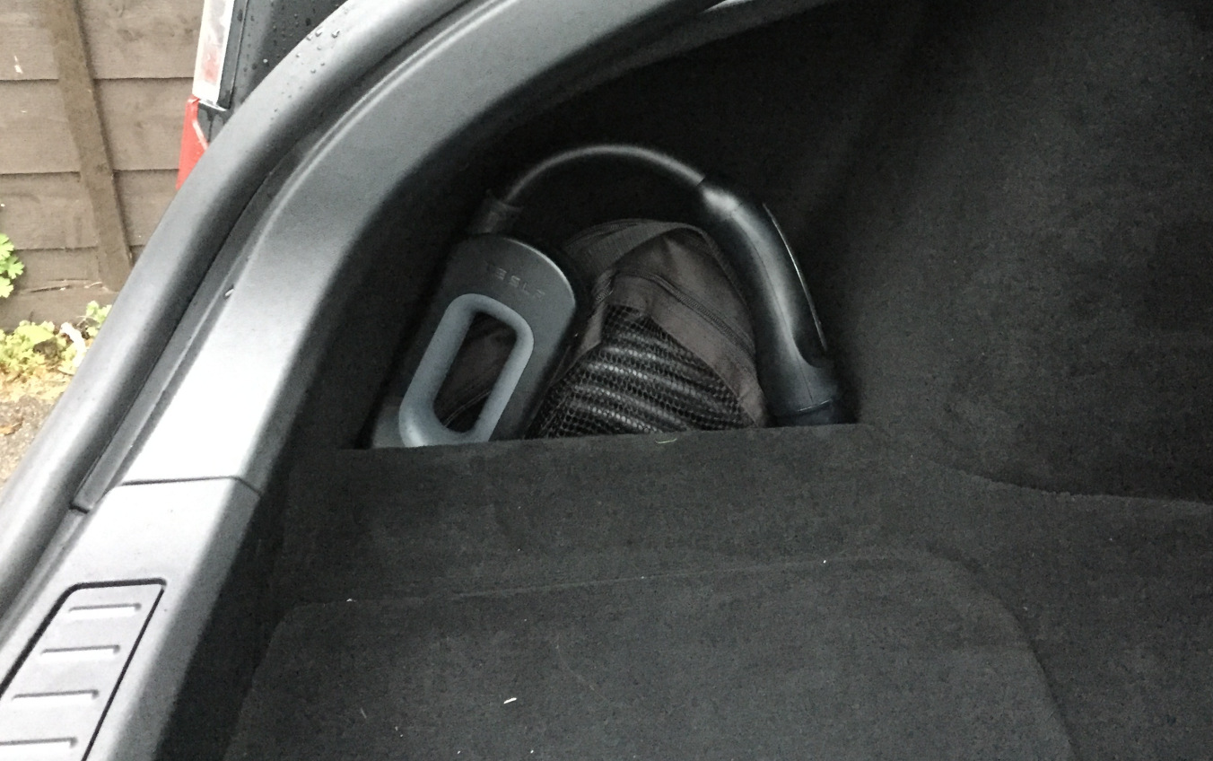 Unfortunately, this thing is quite expensive. There’s no easy way to say this… it’s over £400. Once you’ve got it though it’s fairly easy to use and the Ecotricity “fast” chargers are something like 50 kW, we typically get a charge rate of about 100 mph from them. We find that the CHAdeMO adaptor and the standard cable kit fit quite happily into one of the side pockets in the Model S boot. This keeps them out of the way and means that stuff that you have in the boot doesn’t obstruct your access to them. Read this full guide on the Tesla CHAdeMO adaptor