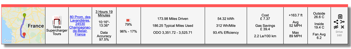 - A little planning allowed the driver to take regular short rest stops as recommended in the Highway Code – but timed them to match superchargers in Tesla’s extensive network. And, not to put too fine a point on it, passenger bladder capacity < car range capacity every time.