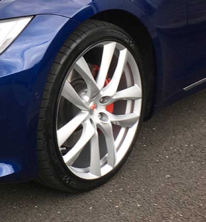 Alloygator – Around £60 DIY or £110 installed (you have to have a suitable 3 ton jack + the ability to deflate and inflate all 4 tyres + a rubber mallet. On 21″ wheels, you must check your fitting is secure every few hundred miles or every time you wash the car, a few people have had theirs come loose and damage paintwork. After around 5000 miles mine needed to be hammed back in, I actually left them until 7000+ and they were fine.