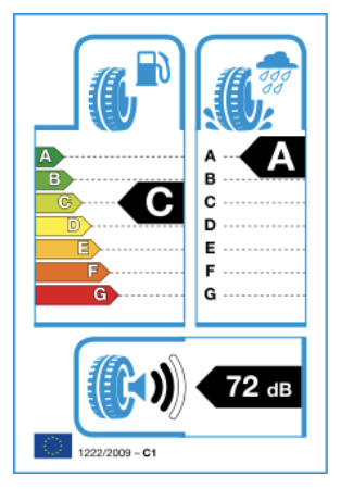 EU Tyre label – Wet Braking rating. What this tells us, is that the tyre has undergone a well specified, independent test, and provides a certain level of performance for braking on a wet, warm (20C) road.