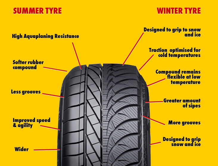 What are the visual/physical differences between summer and winter tyres?