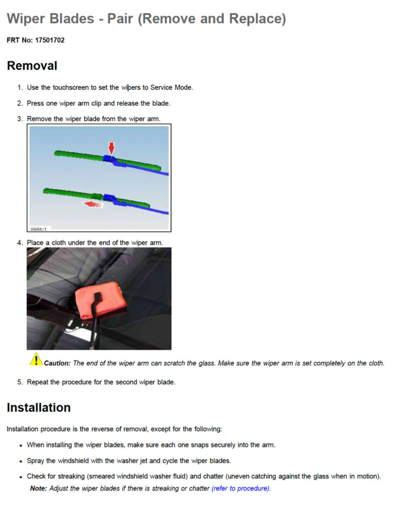 - Use the touchscreen to set the wipers to Service Mode.